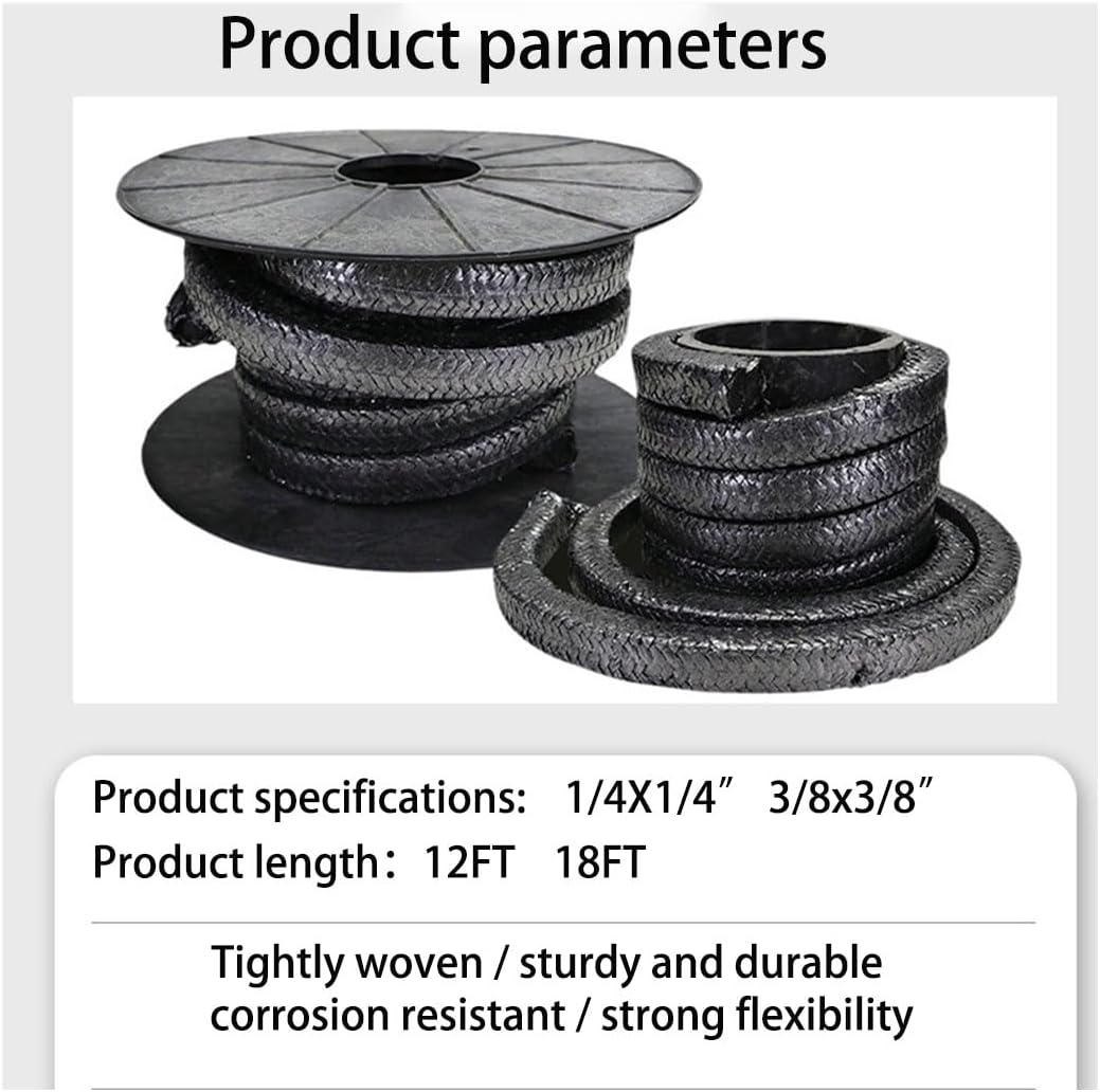 Premium Flexible Graphite Packing | The Expert in Long-Lasting Seals Made from high-purity flexible graphite yarn precision-braided to offer self-lubrication, corrosion resistance, and high temperature/high pressure resilience. Delivers superior sealing performance compared to traditional materials—effectively dissipates frictional heat, accommodates high-speed operation, and significantly reduces leakage and wear. Key Specifications Size: 1/8"×1/8" square cross-section Length: 18 feet per roll (approx. 5.5 meters) Packaging: Individually sealed roll Temperature Range: -200℃ to +500℃ (up to 1600℃ in non-oxidizing atmospheres) Wide Applicability Suitable for pump and valve seals, agitator shaft seals, and valve packing in industries including petrochemical, power generation, paper and printing, marine machinery, and more. Installation Tip Cut at a 45° angle to match shaft diameter, stagger joints during installation, and tighten evenly. The 18-foot roll length is ideal for large-scale repairs and batch maintenance needs.