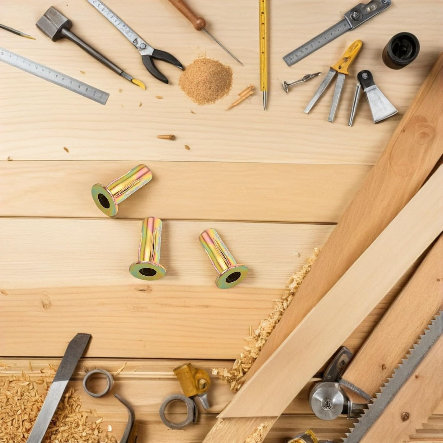 Package List 50 riveted nuts Features -Sturdy connection: flat head carbon steel rivet nuts provide Sturdy fastening, suitable for demanding automotive and industrial environments metal rivet nuts -Quick riveting: advanced riveting technology accelerates installation, enhancing productivity in automotive manufacturing and maintenance workflows galvanized carbon steel rivet nut -Pressure dispersion: lanternshaped design evenly distributes stress, maintaining stability and preventing loosening under heavy loads cordless rivet tool -Weatherproof coating: zincplated carbon steel construction resists Sturdy, making sturdy performance in outdoor automotive applications flat head rivet nut -Product Info:Car riveted nuts -Screw thread: M8*30.5 carbon steel rivet nuts -Size:3.00X1.90X1.90cm/1.18X0.75X0.75in -Material:Iron -Color:Golden -Versatile expansion slots: slotted design suit to different panel thicknesses, making flexibility for diverse automotive assembly and repair projects blind rivet nut toolGoods Informationthreaded insert nuts Its flat head and expansion mechanism provide a secure fit, while the colorful zinc coating enhances durability.threaded rivet tool Designed for versatility and performance, this rivet nut is Suit for creating strong threaded connections in metal components.iron flat head insert nuts Ideal for automotive repairs, construction projects, and industrial applications requiring precision and reliability