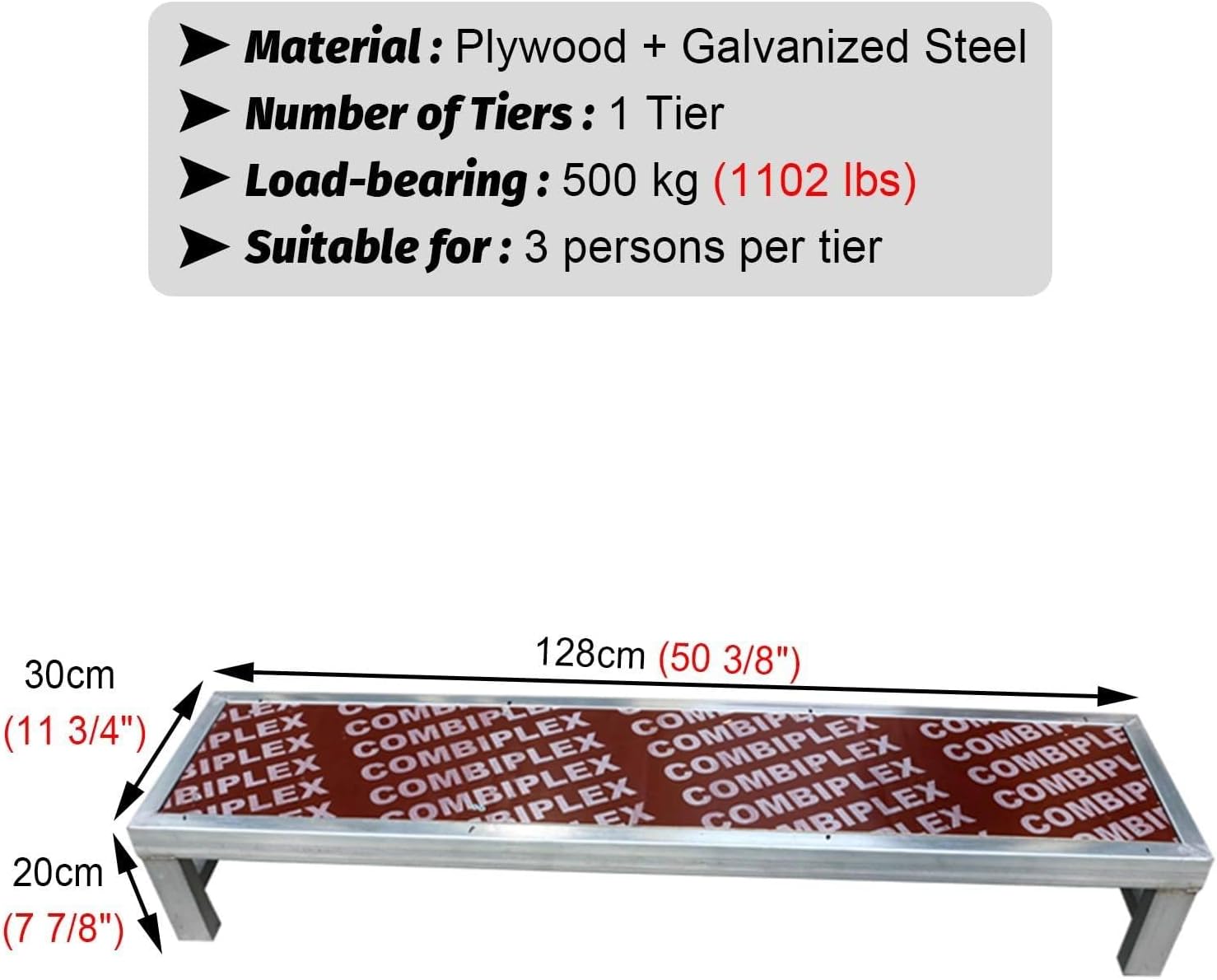 Choir Risers Folding Choral Stairs Stage Riser Platform Based Metal Anti-Slip Portable Stage Platform Multi-Leve,Enhance your choral performances with our versatile choir steps and tiered platforms, designed to elevate both the visibility and acoustics of your ensemble. These temporary stage facilities feature a stepped arrangement, ensuring that every choir member's face and voice are easily seen and heard by the audience, significantly enriching the overall impact of your performance.**Key Features:**- Sturdy welded construction provides reliable load-bearing support.- Anti-slip surface ensures safety for performers, allowing you to focus on delivering captivating performances.- Each tier accommodates up to 3 people, making it ideal for choirs of various sizes.- Quick and straightforward assembly saves you time and effort, so you can concentrate on your music.- Perfect for use in concert halls, classrooms, theaters, and more.- A great choice for group photos, commercial shows, and events.**Specifications:**Material: Plywood and Galvanized SteelNumber of Tiers: Available in 1, 2, or 3 tiersCapacity: Supports 3 individuals per tierLoad-Bearing Capacity: Up to 500 kg (1102 lbs) per tierDimensions: 128x30x20cm (50.4x11.8x7.9 in), 128x60x40cm (50.4x23.6x15.8 in), 128x90x60cm (50.4x35.4x23.6 in)**Package Includes:**1 x Choir StandInvest in our choir steps today and provide your ensemble with the platform they deserve for memorable performances. Whether for a school concert, community event, or professional show, these platforms offer the perfect blend of functionality and aesthetic appeal.