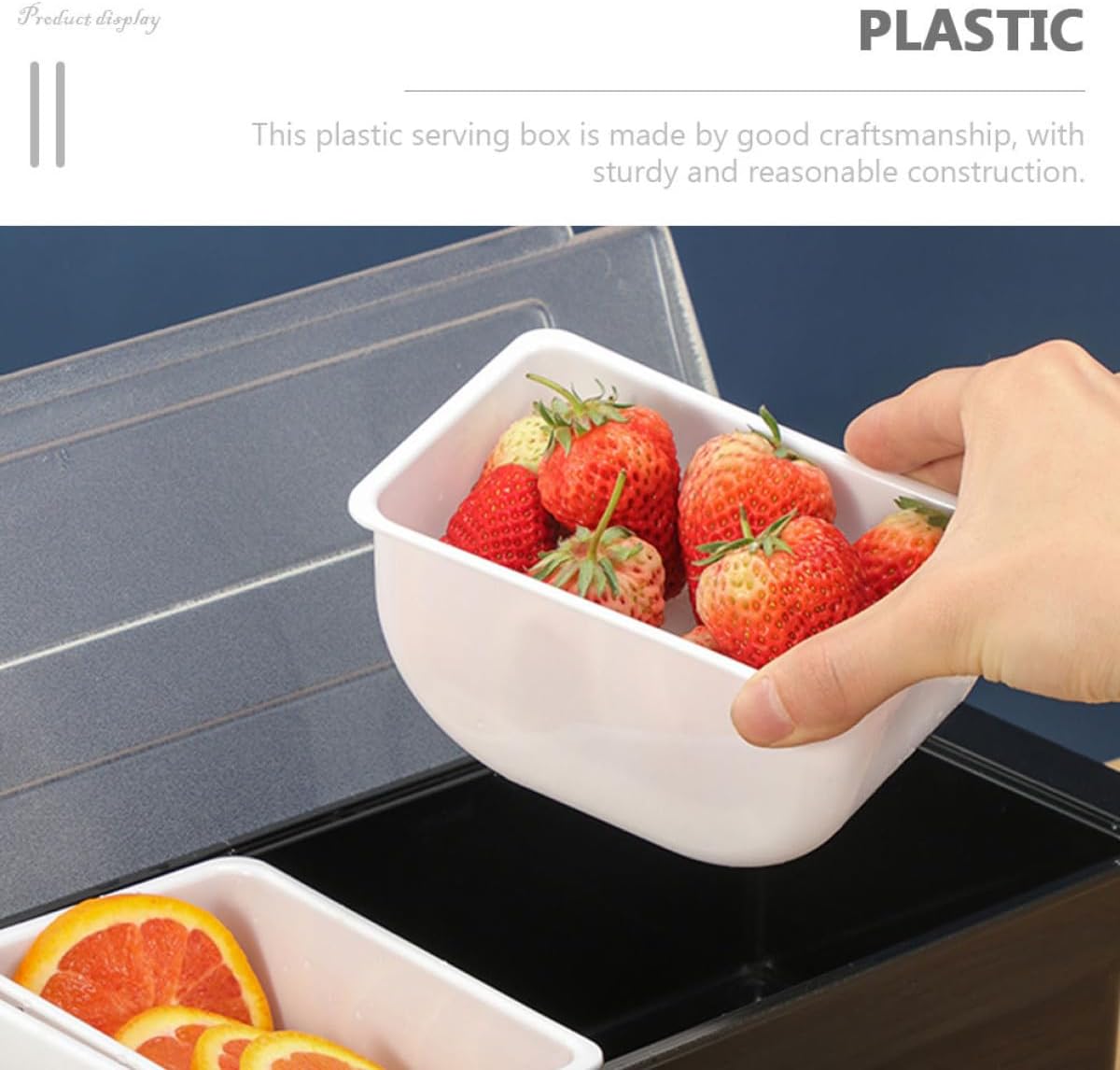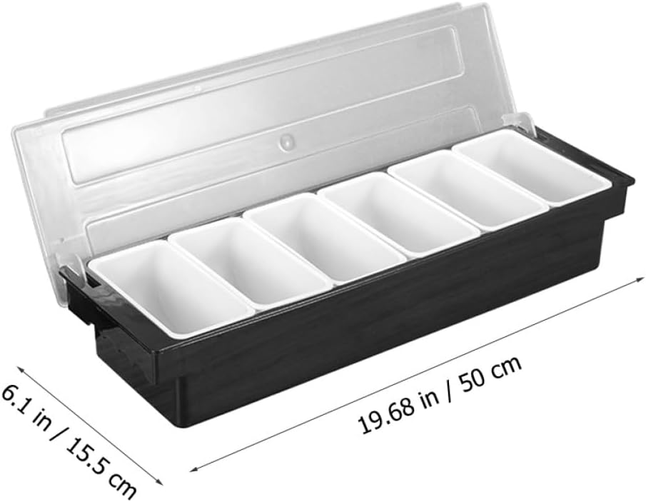 Package List 1 x 6-compartment Bar Fruit Box Features - Size: 50.00X15.50X9.50cm/19.65X6.09X3.73in -Product Info:Seasoning box - Material: ABS, PP - - Widely applied for party like birthday party, shower, Christmas, tea party, celebration and more divided snack tray. - You can serve chips, candies, olives, nuts, fruit, veggies and different appetizers to offer you good using feeling condiment serving tray. - The material is safe and , which is wear resistance and practical for the long time use. - The appearance is delicate and pretty, and the surface is smooth, which can serve you better condiment trays parties. - This plastic serving box is made by good craftsmanship, with sturdy and reasonable construction fruit organizer for refrigerator.Goods Informationsnack compartment containers Can store candy, snacks, chocolate, dried fruits, nuts and so on safely and conveniently.divided snack containers Multiple storage areas, good to store various kinds of food without affecting others, bringing you much more convenience.divided containers for food This is a snack serving box, light weight, proper for longer service time