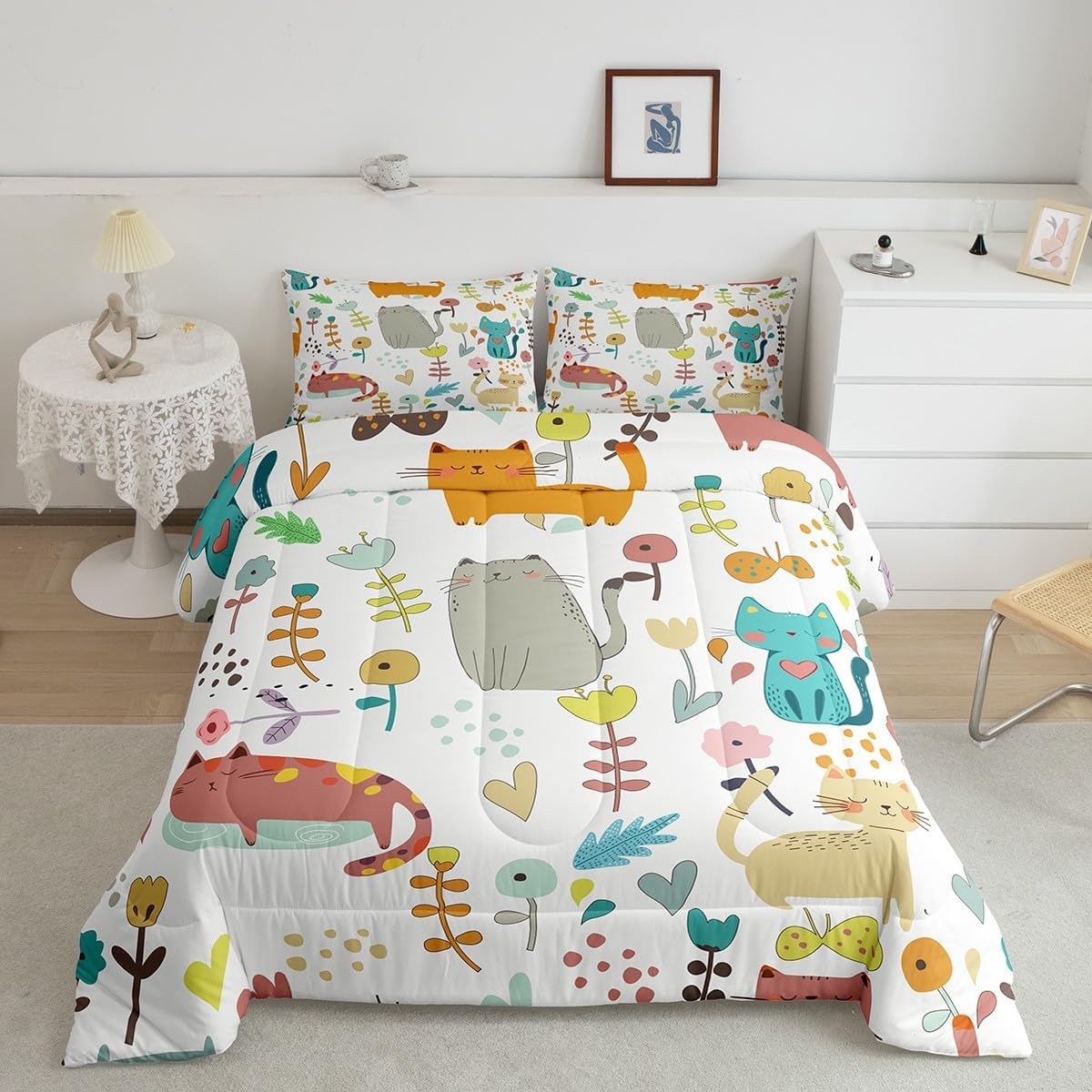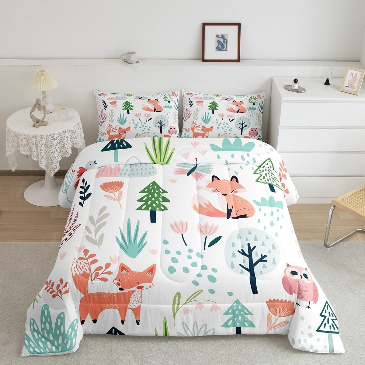 Makeover your bedrooms every season with our comforter sets; good item for your room, girls boys youth room, master bedroom Also a great decoration idea for your mom, dad, sister, brother, grandma, wife, husband, daughter, son and all other beloved Size Information:1 Toddler size comforter 42" X 58" and 1 pillowcase 30" X 20"1 Twin size comforter 68" X 90" and 1 pillowcase 30" X 20"1 Full size comforter 79" X 91" and 2 pillowcases 30" X 20"1 Queen size comforter 90" X 90" and 2 pillowcases 30" X 20"1 King size comforter 104" X 90" and 2 pillowcases 36" X 20"Useful and practical: A practical product for homes, dorm rooms, hotels, guest rooms. Comfortable to use for being polyester which is soft and breathable Unique design:Vivid colors and clear printed with digital printing. These unique designs match well with various color of your rugs, curtains, headboard, furniture, and all other decor accessories Characteristic:As manufacturers of digital printed home textiles, we follow current trends and bring you new home fashion Either a comforter to your family or friend, relative or boyfriend girlfriend, or to yourself, the item should be interesting and authentic Note:The comforter and pillow cases are printed on the front side only, the back of them are white colored