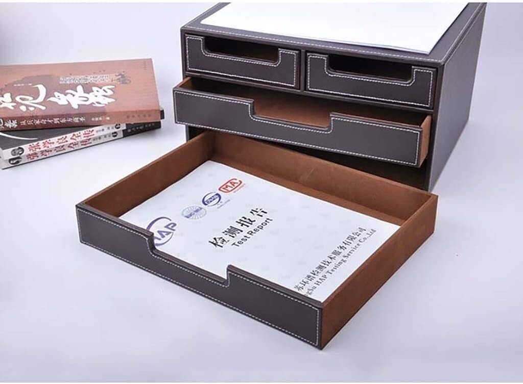 This file cabinet can make your office table clean and tidyProduct Name: Leather file storage cabinetColor: A1 black, B1 brownMaterial: Sandwich MDF, surface leather, lined with flannelSize: 34*25.5*18.5cmLayer height: 5.5cmProduct weight: 3000gAdaptation range: office, living room, bedroom, family, school, business, shopping mall, corporate, etc.
