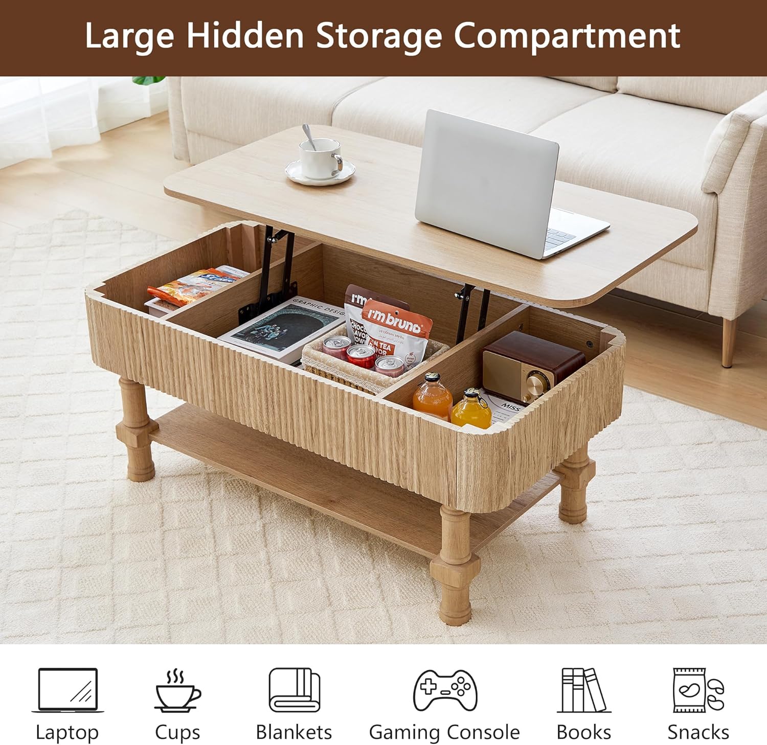 | Model Name | Fluted Lift Top Coffee Table |