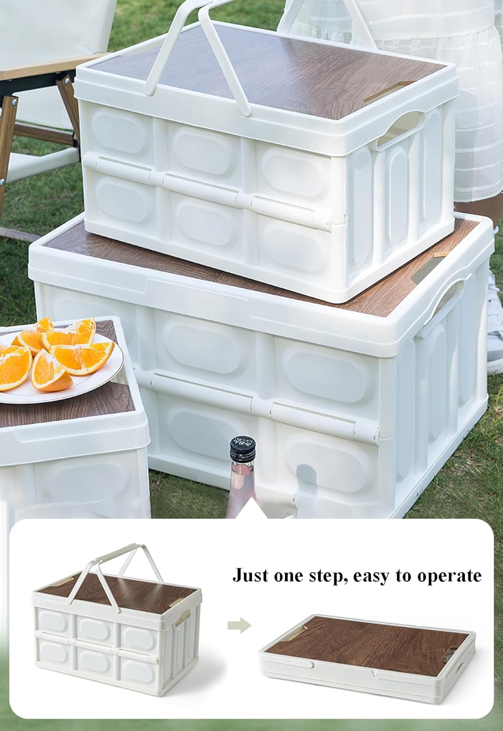 This foldable storage box with lid is ideal for storing various items. It has a foldable design and can be folded up for storage when not needed. It is also a good camping equipment when camping outdoorsproduct information:Product name: Folding wooden lid storage boxMaterial: PP+wood boardCapacity: 15L\30L/55Lcolor: WhiteFunction: FoldableStorage scenarios: car, kitchen, bedroom, campingpacking list:1*Folding wooden lid storage boxnotes:1. If you have any questions, please send us an email and we will reply to you in time.2. There may be a slight deviation of 1-2 cm between the data and manual measurement.