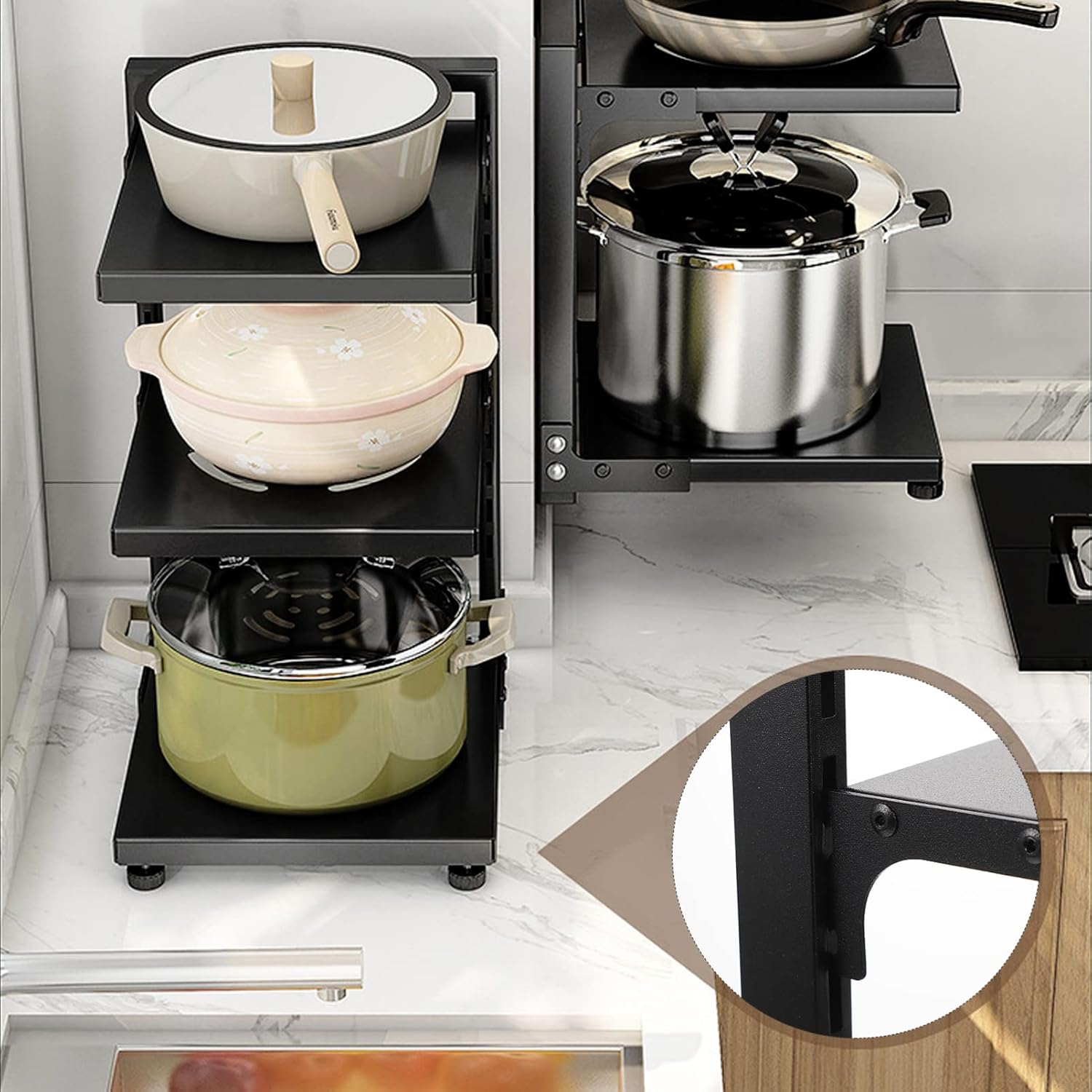 Package Include 1 x under sink organizer Features -Size:26.50X22.50X40.00cm/10.41X8.84X15.72in pan organizer rack -Color:black sink storage organizer -Material:Carbon steel pot storage holder under sink - This pot and pan organizer can be easily assembled in several minutes, largely save your time and efforts storage organizer. - Excellent bearing capacity, and the space of each tiers can be adjusted due to the snap design, rather convenient kitchen storage rack. - Three layers storage, utilize spare space better, this pan organizer rack for cabinet is perfect for bathroom and rack. - Practical 3-tier pots and pans rack keep all your pans, pots, griddles, skillets neatly organized in cabinet, countertop, under sink or small corners pot holder. - Adopting premium and sturdy materials, not easy to deform or break, this pots and pans organizer withstand under sink shelves.Goods Descriptionkitchen organizer This under sink organizer will make home storage easier, suitable for storing many items like pot, pan, and other cookware.kitchen rack multi-layer pot storage rack This under sink organizer is made from , can withstand lasting use.under the sink organizer It has high durability, not easy to deform or break due to the excellent bearing capacity
