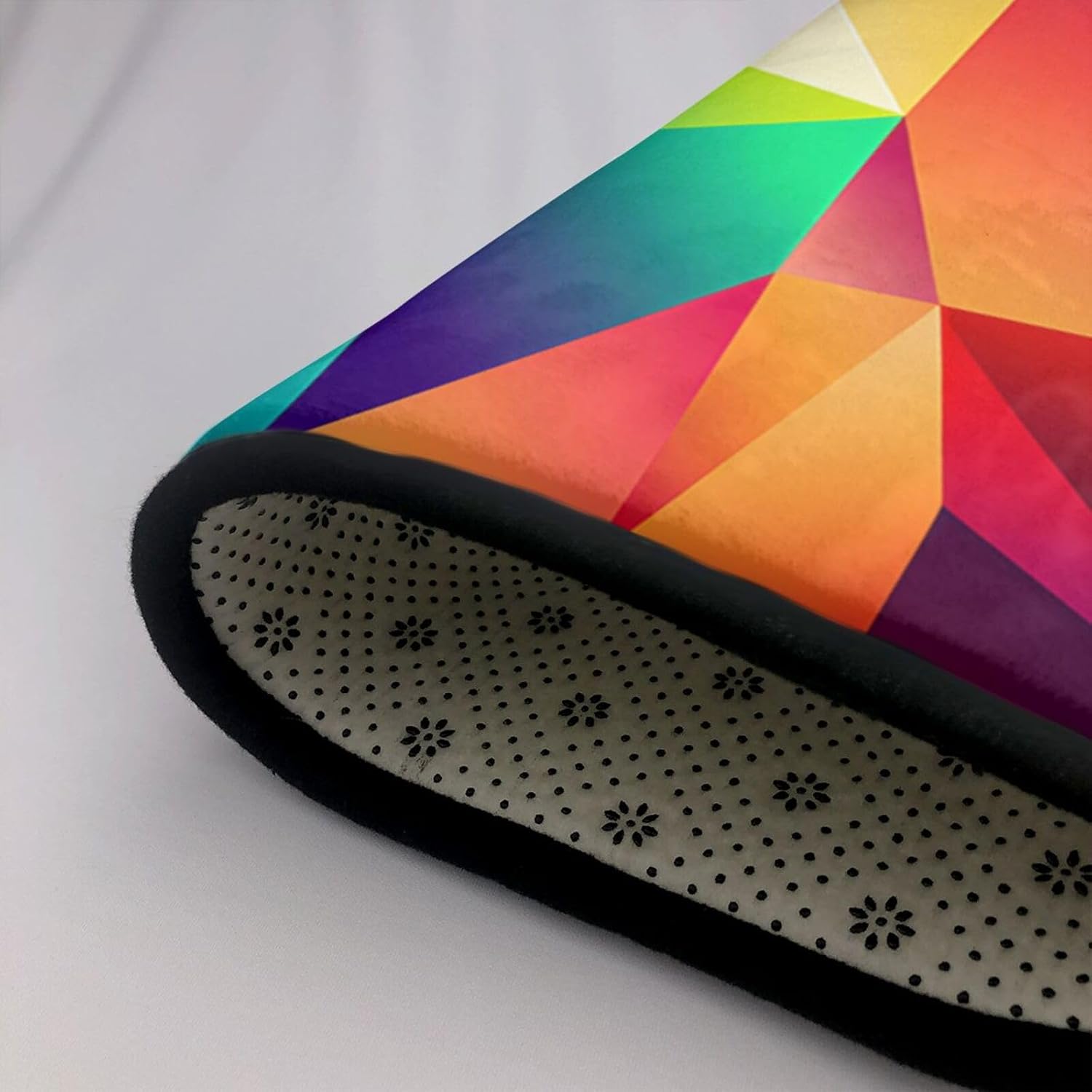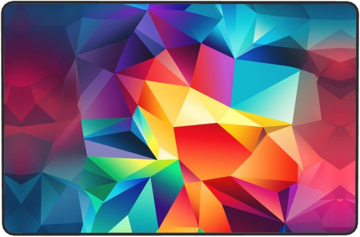 Transform your home with the exquisite WZYWHJ multicolored polygon Printed flannel carpet floor mat 36"x24" . Crafted from high-quality flannel fabric (polyester), this carpet boasts a high density space elastic cotton interlayer that is not only absorbent but also incredibly soft to the touch. The delicate fluff texture adds a touch of luxury while ensuring no pilling or fading over time. The innovative middle layer features a high-density memory sponge that effectively relieves foot pressure, making it a comfortable choice for any room. Suitable for a wide range of scenarios including living rooms, offices, coffee tables, beds, and balconies, this carpet floor mat offers versatility and style. The bottom of the mat is made of non-woven fabric and plastic, providing an anti-slip and durable foundation. Easy to clean, wear-resistant, and lint-free, this WZYWHJ carpet is the perfect blend of comfort, functionality, and durability.