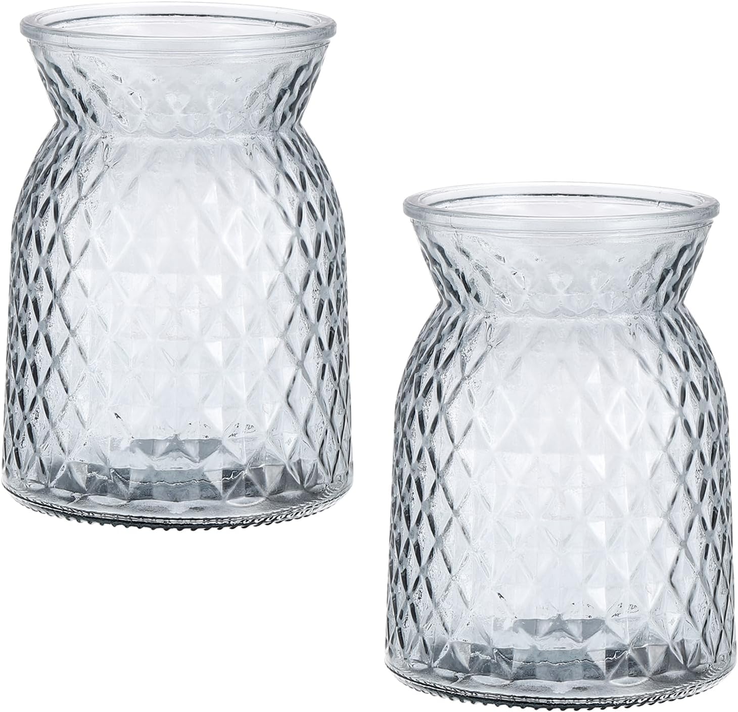 The classic flower vase is made of glass, clear and durable. It can accommodate different flowers and can be placed in the living room, bedroom, dining table, entryway, office table, bookshelf, porch, and more as a decoration, adding a contemporary charm to your space.Specification:Color: Blue Material: GlassTotal Length:16cm / 6.3 inchOpening Diameter: 10.2cm / 4 inchBase Diameter:11.5cm / 4.52 inchPacking List: 2 x Clear Glass Flower VaseAdvantage:The decorative vase is made of good quality glass, which is clear, strong, durable and not easy to break. The clear glass vase with a wide opening provides ample space for long-stemmed flowers,effortlessly accommodating various flowers.Instruction: Trim flower stems to fit the height of the vase, gently insert the flowers into the vase add the right amount of water, and choose an appropriate position to place them.Note: Place it on stable surfaces to prevent accidental tipping.