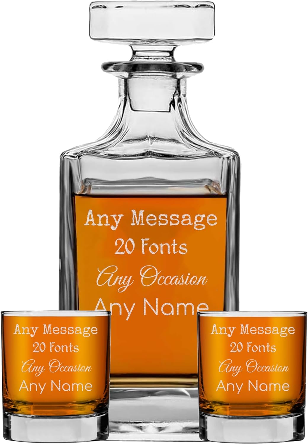 Personalized Etched Glass 25oz Square Whiskey Decanter, Custom Engraved Gift, Retirement, Anniversary, Housewarming, Customized Bourbon Gifts for Men, Scotch Birthday, Him,Dad,Father, Your Text Here