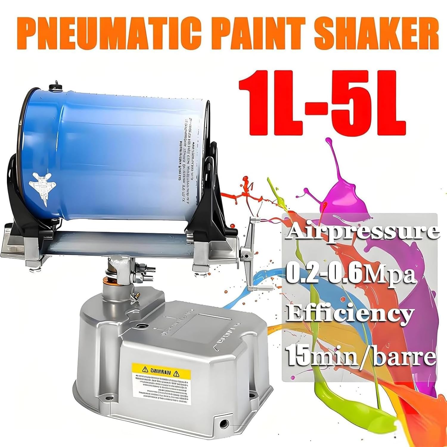 Our pneumatic paint shaker is here to simplify your mixing process, making it easy to get perfectly uniform paint, inks, or coatings every time. As an air-powered mixing tool, it relies on compressed air (working pressure: 0.2-0.6 Mpa) for operation, no power supply needed—this design not only avoids the risk of electric sparks but also makes it safe to use even in environments with volatile fumes, such as printing factories or small coating workshopsThis paint shaker features a desktop layout with a compact size of 400x400x350mm (15.7x15.7x13.8in) and a gross weight of only 9kg (19.8Ib), so it won’t take up much space and is easy to place in your home, studio, or workshop. It adopts a fixed manual clamping type installation, with an adjustable clamp that fits barrels with diameters and heights ranging from 80mm to 250mm, compatible with 1-5kg (1-5L) round and square barrels. Whether you’re mixing small batches of watercolor at home or handling industrial coatings in a factory, it can securely fasten the container and complete the mixing task stablyEquipped with a directional oscillation method, this shaker operates at an adjustable frequency of 0-500 times per minute, capable of handling liquids with viscosities between 100-600dpa.s. It takes only about 15 minutes to mix one barrel of material, effectively eliminating pigment settling and ensuring consistent color and textureThis versatile mixer is not just for paints—it works perfectly with inks, carbon inks, coatings, and even watercolor. It’s an ideal choice for various scenarios: printing factories for ink mixing, home use for daily paint preparation, craft studios for pigment blending, and small businesses for batch production. With an adaptable environment range of -10℃ to +60℃, it can work stably in both dry and humid conditions, no matter the season or location