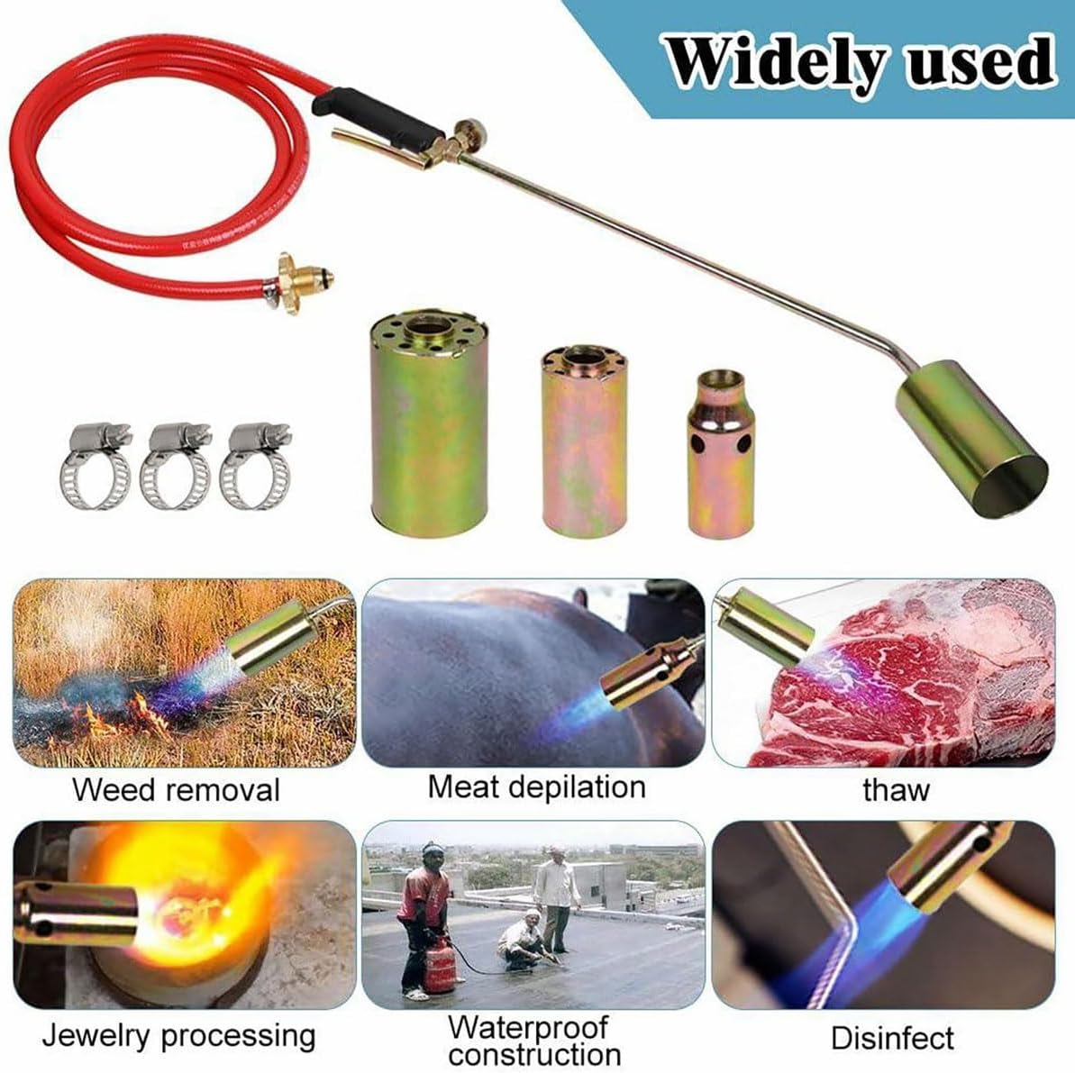 Features:1.Multi-purpose flamethrower, suitable for multiple scenarios such as welding and weeding2.Brand new set, complete with flamethrower + accessories, ready to use without additional purchase3.For home use and construction, it can be used as a flamethrower and weed remover, with practical functionsSpecification:Name:Torch BurnerMaterial: Iron, Stainless Steel3 Nozzle Sizes: 5CM, 4CM, 3.2CMProduct Use: Weeding, Maintenance, Heating And Thawing, Barbecue Ignition, Product Heating, EtcApplicable Gases: Methane, Butane, Liquefied Gas, Coal GasWeight: 250gPackage Included:1*Propane Torch Weed Burner KitNotes:1. Due to manual measurement, 2-3cm deviation is allowed.2. Different monitors have different calls, and the product color is subject to the actual product.