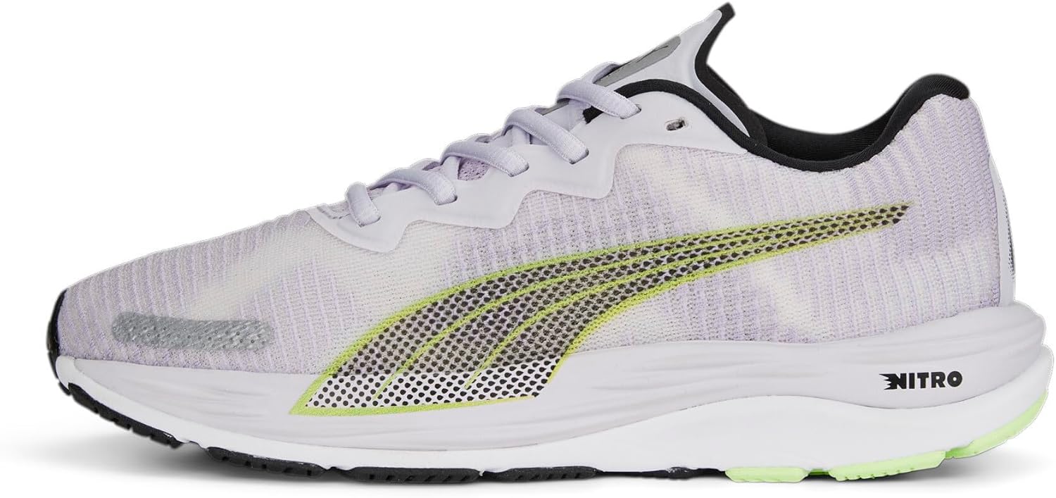 Product Information Puma Velocity Nitro 3 Women's with the theme of "No one will bend, no wobble." These shoes have been adjusted to the height of the instep and size to fit the shape of a woman. This model features psychedelic coloring with fluorescent colors. The combination of NITRO FOAM provides explosive speed and the PRO FOAM LITE provides stability and durability to ensure a stable ride without any shaking while still feeling bouncy ride. The upper is reinforced with PWRTAPE, breathable engineered mesh Rolled collar construction at heel increases comfort and fit. Heavy duty rubber outsole for traction on a variety of surfaces. Provides smooth comfort and optimal cushioning for every runner. Features NITRO Advanced Technology for Superior Response and Cushioning PRO FOAM LITE: EVA midsole foam that provides stability and durability Roll collar construction: foam reinforced heel for comfort and fit ENGINEERED MESH: Premium material designed for breathability and reinforced with PWRTAPE. PUMAGRIP: Heavy duty rubber outsole provides traction on a variety of surfaces. Details Stable TPU heel spoiler Cushion Level: Medium Lace-up closure Heel - Toe height difference (drop): 8 mm Pronation Type:Neutral