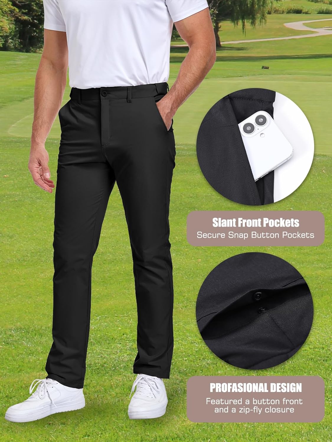 Rapoo Men's Stretch Golf Pants Elastic Waist Slim Fit Slack Soft Lightweight Quik-Dry Trousers Casual Dress Work Pants for Men