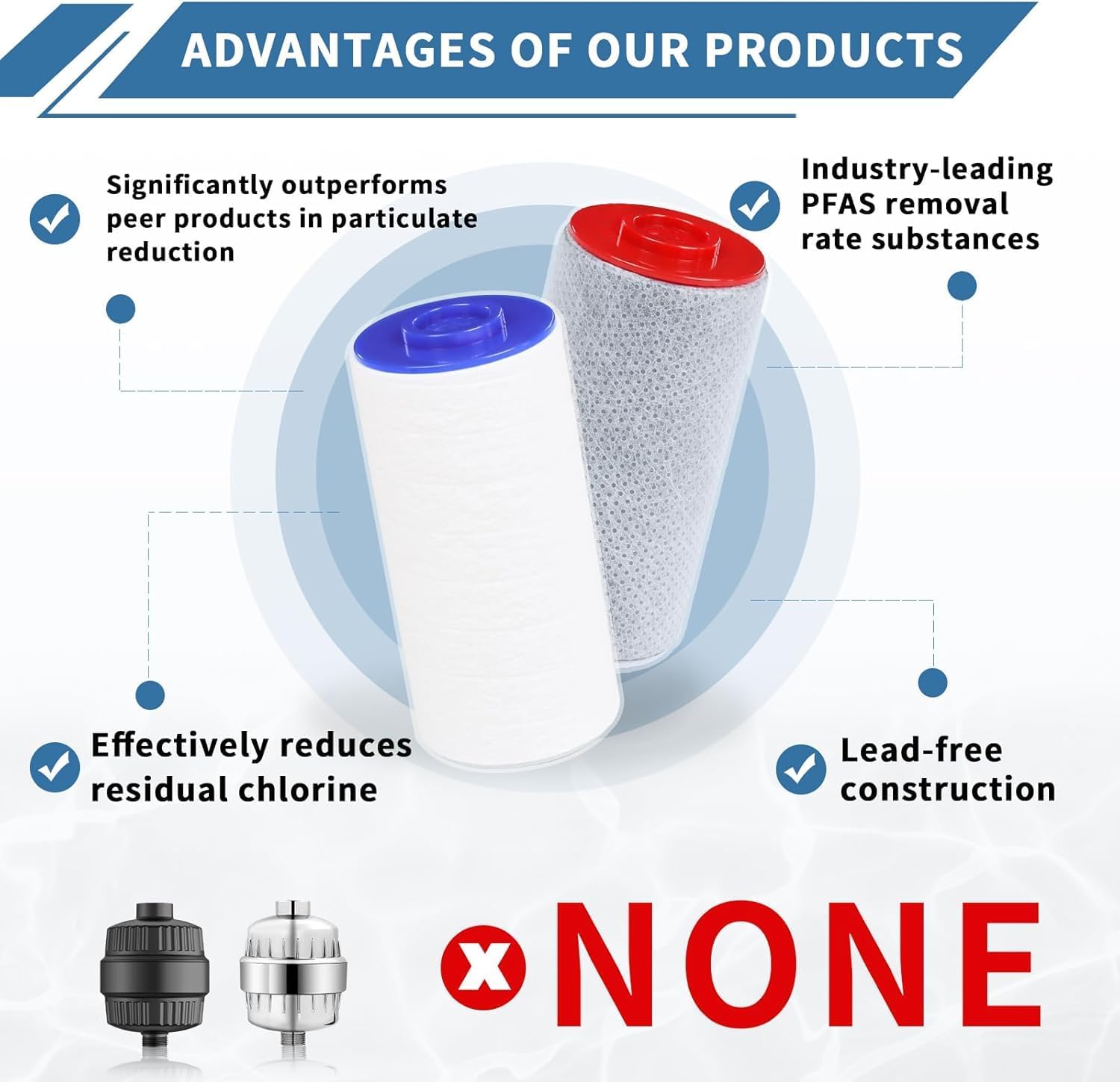 | Product Benefits | Removes chlorine and PFAS for cleaner, healthier water and improved skin and hair health. Easy to install and maintain with a long filter life. |
