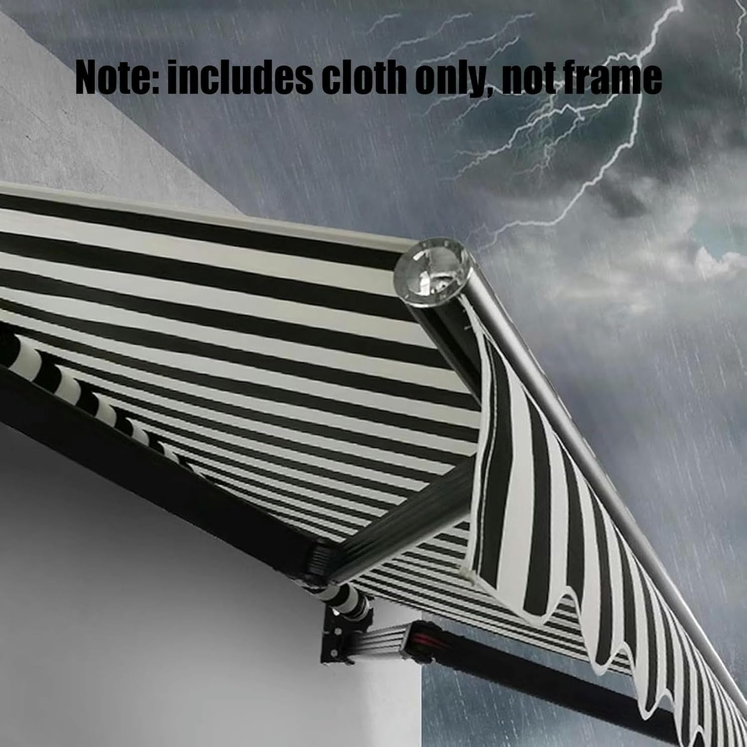 Our retractable sun shade will create a nice and cool place on your porch or patio and protect you from harmful UV rays.Ideal for installation at a patio, a balcony or a storefront.Excellent protection against UV rays and is fade-resistant for long-lasting use.High-density 280 gsm water-resistant polyester with PU coating.Product name: Replacement cover for awningsColour: As ShownOverall size: length against wall x telescopic length + 26cm corrugated edge.Material: Polyester 280gFunction: Waterproof, UV resistant, sun resistant.Package Included:1 x Awning Fabric Replacement CoverNotice: (Telescopic boom and accessories not included, you need to buy it separately)We will provide the best service and the best shopping experience to every customer. To ensure the order is satisfactory, please check the dimensions provided in the instructions. If you are not sure about the size, please send us an email for recommendation.
