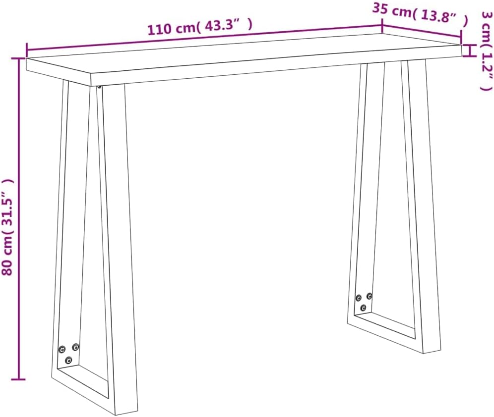 This console table, with a solid acacia wood tabletop and stable U-shaped legs, makes a great addition to your living room or hallway.Solid acacia wood: The tabletop is made of solid acacia wood. Solid acacia wood is a beautiful natural material. Acacia wood is a tropical hardwood, which is dense, sturdy, and durable.◆Live edge: The wood's live edge that follows the natural shape of the tree increases the beauty of the table.◆Stable frame: The U-shaped powder-coated steel legs add an industrial style to your interior while ensuring the stability of the side table.◆Displaying function: The sturdy tabletop is ideal for displaying decorative objects, photo frames, or potted plants. Details:◆Material: Solid acacia wood with an oil finish, powder-coated steel◆Dimensions: 110 x 35 x 80 cm (L x W x H)◆Tabletop thickness: 3 cm◆With live edge that follows the natural shape of the tree◆Assembly required: Yes