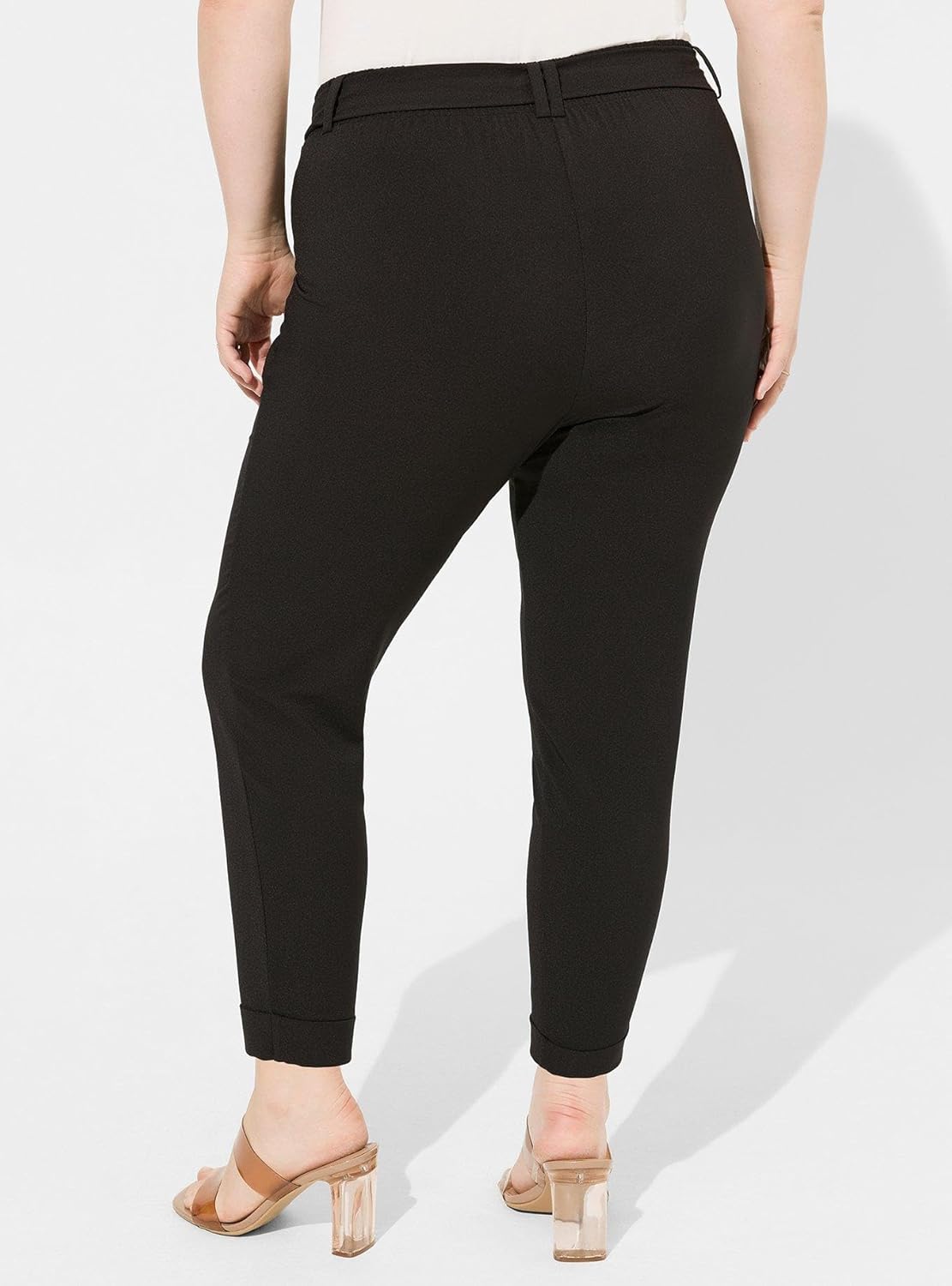 FITModel is 5'10" wearing size 14.High-rise, pull-on waist with front tie.Eased through the hips and thighs.Tapered leg hits just above the ankle.Inseams: Ex-Short 23", Short 25", Regular 27", Tall 29", Ex-Tall 31".MATERIALS + CAREStretch crepe woven fabric: Lightweight fabric with a hint of stretch and subtle texture. Looks refined (but you can throw it in the washing machine).Stretch level: Medium94% polyester, 6% spandex.Machine wash cold. Tumble dry low.DETAILSFly-free elastic waistband.Optional self-tie belt.Front pockets.No hardware or buttons for optimal comfort.WHY WE LOVE ITIt’s a chic, modern pant that goes with pretty much anything—and it’s perfectly designed to skim curves. How could we not love it!